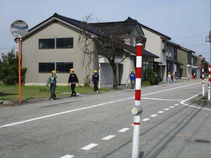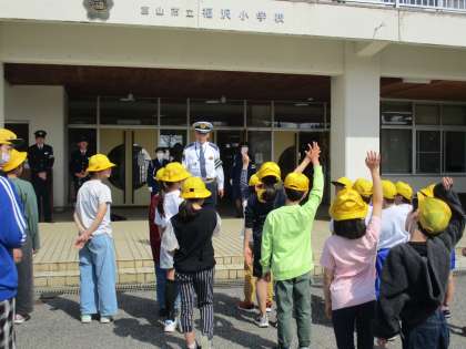 富山南警察署、富山南交通安全協会、大山地区の交通指導員の方々に来て頂き、交通安全教室を実施しました。