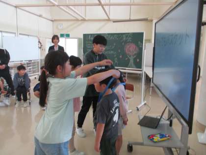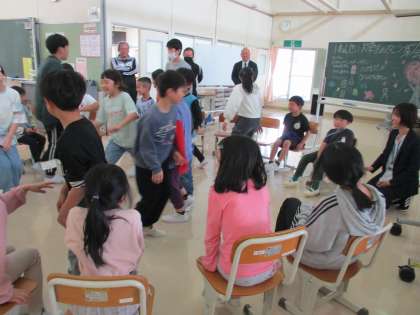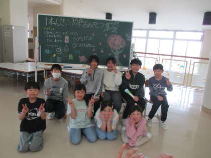 1年生と仲良くしようと願い、4〜6年生が企画し入学おめでとう集会を開きました。