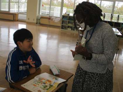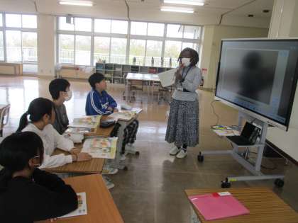 外国語の学習をしました。ALTの先生の発音を聞き、一緒に発音したり、ALTの先生の話すことを理解して、英語でやりとりしたりするなど、外国語に楽しく親しみました。