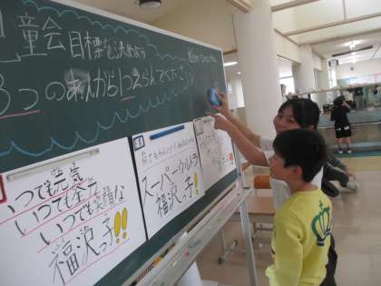上学年では今年度、どんな福沢小学校を目指したいかを話し合い、児童会目標の案を3つ考えました。来週、全校児童みんなで3つの案をもとに、児童会目標を決めます。どんな目標になるのか楽しみです。