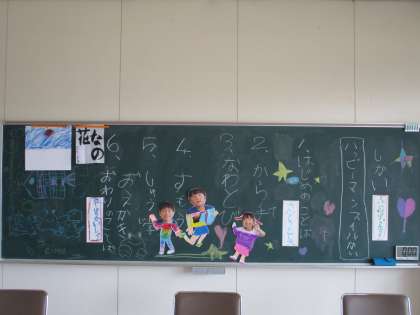 みんなで「ハッピーマンになろう!スマイルになろう」と考えて、第1回目の学級集会を行いました。集会名やプログラム、役割を学級会で決めて、準備してきました。