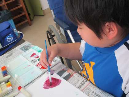 「絵のぐ+水+ふで=いいかんじ!」という題材で作品づくりに取り組んでいます。
