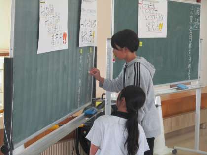 児童会目標を決める話し合いを全校で実施しました。みんな真剣に考えて、意見を出し合いました。