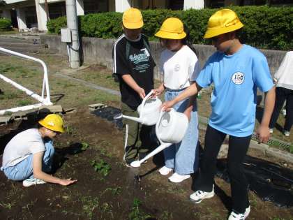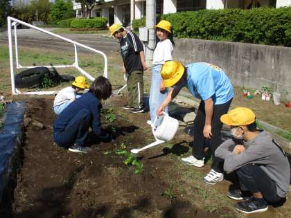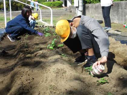 畑に植えたジャガイモへの水やりや、周りに生えていた草むしりをしました。