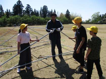 運動会に向けて 公開日 2024/05/14 更新日 2024/05/14 学校 明日の運動会予行練習のために、3〜6年生で準備をしました。 団テントを組み立てたり、重りを運んだり、一生懸命頑張りました。