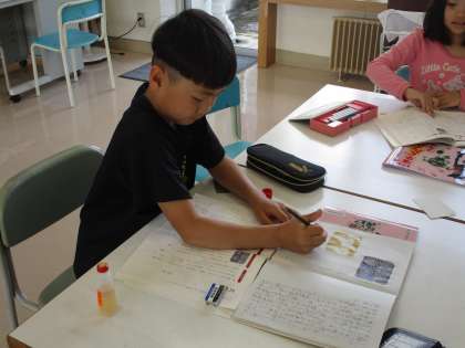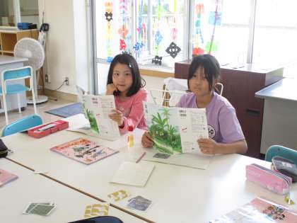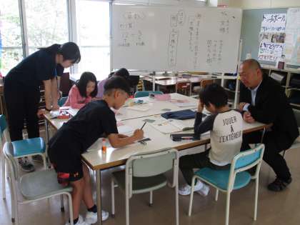 3年生は国語で、文様について勉強しました。「つるかめ」「かりがね」「あさの葉」の3種類の文様について、それぞれにどんな願いが込められているか学びました。