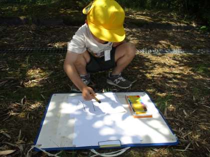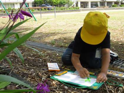 図工の時間に「おはなみスケッチ」をしました。グラウンドに出て、春にしかない生き物やお花等を探して、スケッチしました。