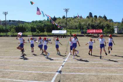 赤団のアピールタイムの様子です。カズピオに元気を貰い、元気いっぱい応援しました。
