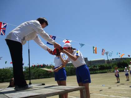 今年度の運動会の結果は、総合優勝は白団、次勝は赤団でした。 点数差はほとんどなく、両団とも一生懸命に頑張りました。
