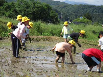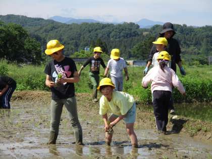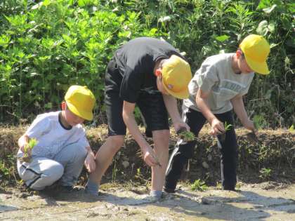 田植え体験 公開日 2024/05/22 更新日 2024/05/22 学校 全校で、田植えの体験をしました。田んぼの中に足を入れ、泥の独特な感触を味わいました。 毎年実施しているため、上学年は慣れた手つきで上手に植えることができました。下学年は泥の冷たさや重さに苦戦しながら、一生懸命田植えを体験しました。 素晴らしい機会を毎年提供してくださっている齊藤さん、ありがとうございます。本年度もよろしくお願いいたします。
