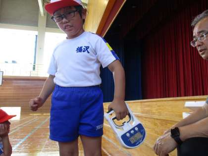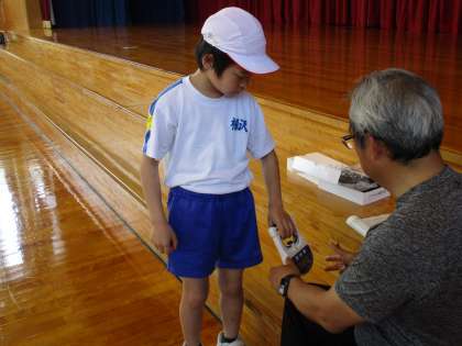 1年生は初めての測定に、わくわく、どきどきしながら取り組みました。