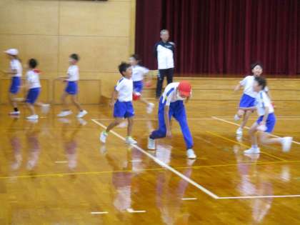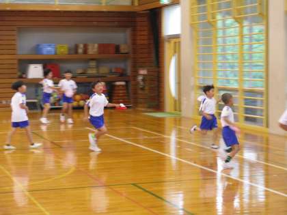 今日は雨だったので、体育館で鬼ごっこをしました。