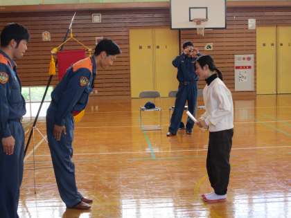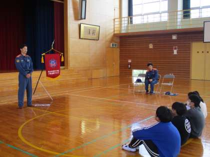 大山消防署より3名の消防士さんに来ていただき、バッジ授与式を行いました。