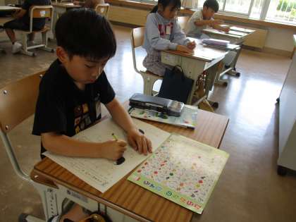 ひらがなを正しく書こうをめあてに、体の部位を頭から順番にひらがなで書いています。