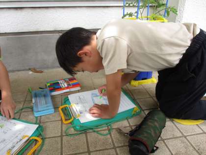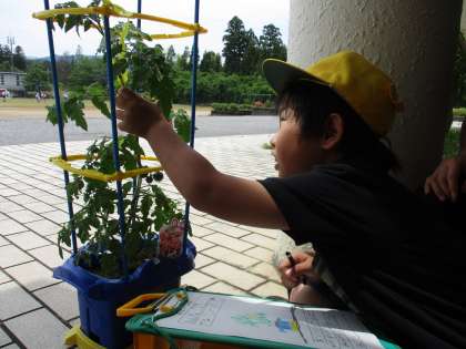 2年生は、トマトの実や花が増えてきました。「早く食べたいな」「赤くなるのはまだかな」とトマトができるのをとても楽しみにしています。