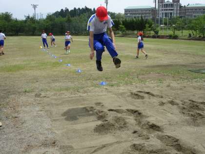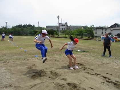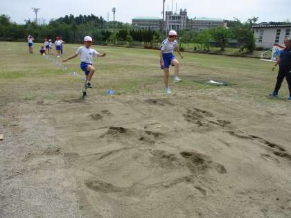 走り幅跳びをしました。どうすれば遠くまで跳べるのかと考えながら取り組みました。