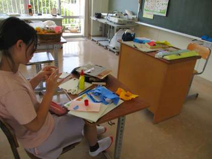 針と糸とフェルトを使い、ペンケース作りに挑戦しました。かがりぬいをし、仕上げに流れ星を付けました。満足した作品が出来上がったようです。