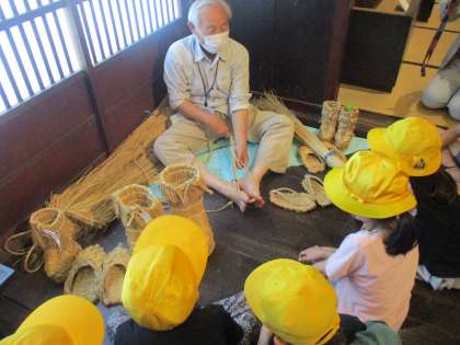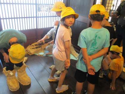 3・4年生 小見小との交流校外学習 公開日 2024/06/17 更新日 2024/06/17 学校 富山市民俗民芸村での様子(その2)です。 わらぐつを編む様子を見学し、実際にわらぐつをはかせていただきました。
