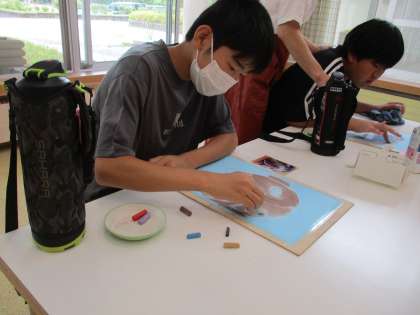 野菜や果物や思い出の品、自分が描きたい物を事前に準備して、パステル画を描きました。