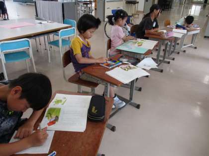 「まいごのかぎ」というお話を読み、登場人物「りいこ」の気持ちの変化を読み取りました。自分の好きな場面を紙に書き、リーフレットを作成しています。