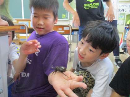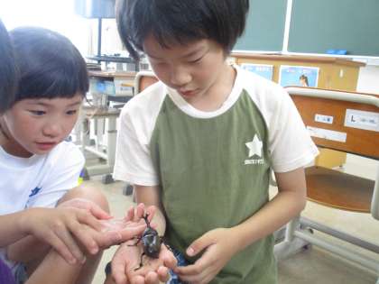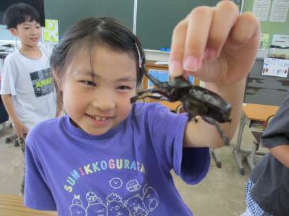 3・4年生 カブトムシ 公開日 2024/06/25 更新日 2024/06/25 学校 あおぞら2組で飼育しているカブトムシが羽化しました。 昆虫が大好きな子どもたち。カブトムシを観察し、触らせてもらいました。