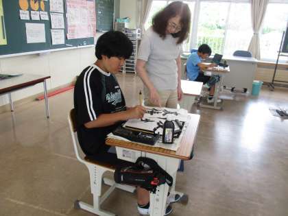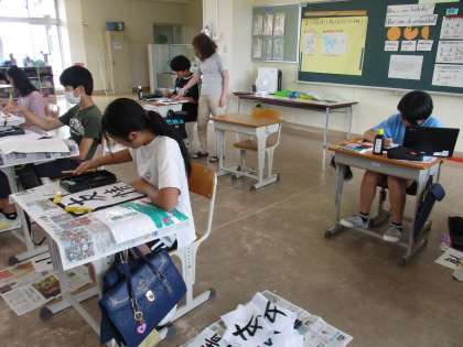 5年生は「読む」、6年生は「友情」という文字を書きました。