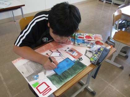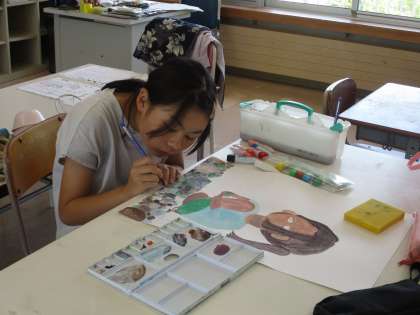 「あの時 あの場所 わたしの思い」をテーマにして、自分のお気に入りの場所を選び、水彩絵の具で描きました。