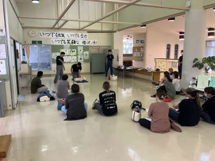 ふたば会AED講習会 公開日 2024/07/05 更新日 2024/07/05 学校 夏休みのプール開放に向けて、監視員をしてくださるふたば会のみなさんがAED講習会に参加してくださいました。ありがとうございます。
