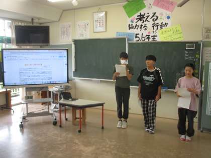 上学年国語 5・6年生「火災予防について調べ、提案する文を書こう」 公開日 2024/07/08 更新日 2024/07/08 学校 総合的な学習の時間で調べたことを生かして、火災予防について提案する文章を書きました。どのチームも協力して、伝えたいことが伝わるように文章の構成を考え、説得力のある文章をつくり上げました。
