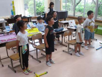 1・2年生(音楽) 公開日 2024/07/10 更新日 2024/07/10 学校 音楽会に向けて、歌の練習をしています。 今日は、色んなパートの歌い方を聞いたり、歌ってみたりしました。主旋律ではないパートは、音程が少し難しいですが、何回も挑戦して歌いました。
