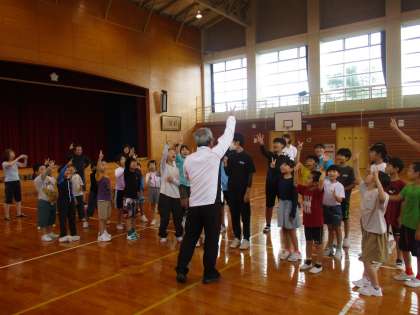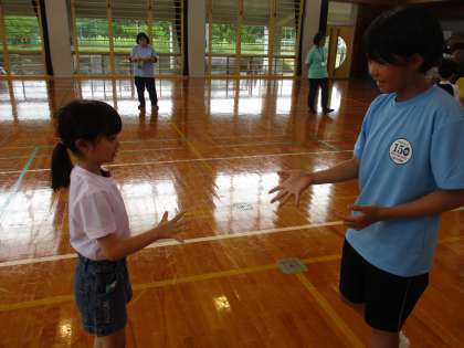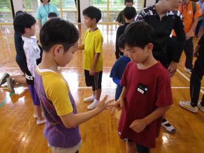 最初は、体育館で自己紹介を含めた、簡単なゲームをしました。