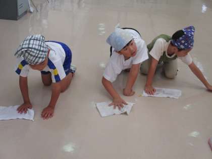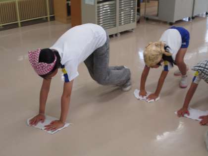 濡れ雑巾を使い、床を重点的に清掃しました。床がピカピカになりました。