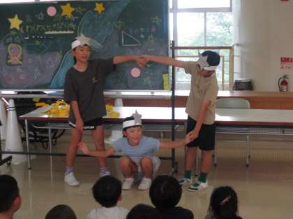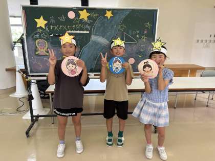 日本の行事に親しみ、みんな仲良く笑顔で楽しむことを目当てに、4年生が「夏のワクワク七夕集会」を開催しました。