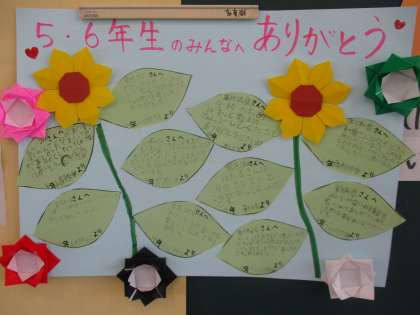 3・4年生は、5・6年生が昨日開いてくれた集会のお礼の手紙を書き、休み時間に渡しに行きました。かわいい折り紙もあり、感謝の気持ちがこめられた素敵なお礼でした。