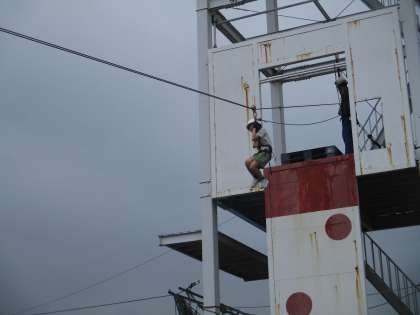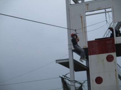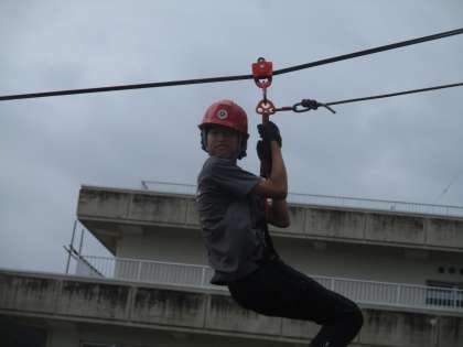 5・6年生 BFCのつどい(その2) 公開日 2024/07/30 更新日 2024/07/30 学校 つぎは、ジップラインに挑戦しました。7mの高さから降りるのは、勇気がいりますが、みんなスリルを楽しみながら降りていました。