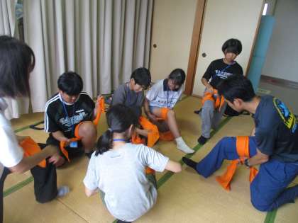 5・6年生 BFCのつどい(その3) 公開日 2024/07/30 更新日 2024/07/30 学校 救護体験をしました。三角巾を折りたたみ、傷口に当てる方法を学びました。そして、最後にクイズ大会をして、豪華景品と参加賞をもらいました。