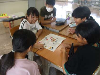 久しぶりに友達と会い、うれしそうな子供たち。「夏休みすごろく」で夏休みの思い出を話したり、夏休みにつくった作品を見合ったりして、みんなで楽しく過ごしました。