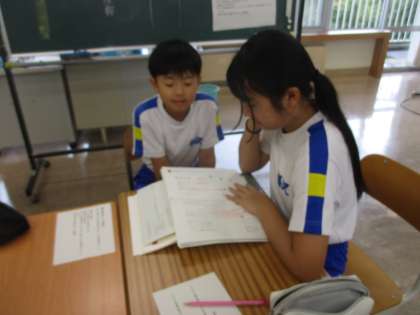 各学年2つの詩を読み、詩に込められた思いや詩の表現の効果について考えました。学習の最後には、他学年に詩を読み聞かせ、学んだこと、感じたことを伝えました。