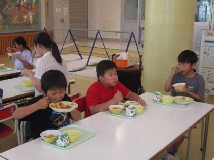 今日の給食は、子供たちが大好きなカレーライスでした。