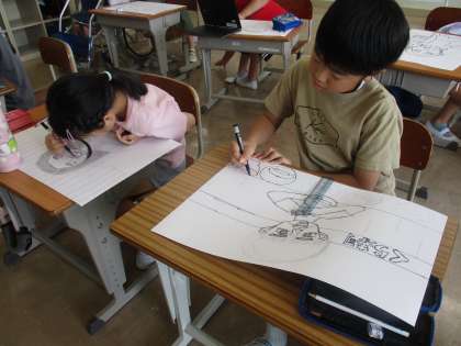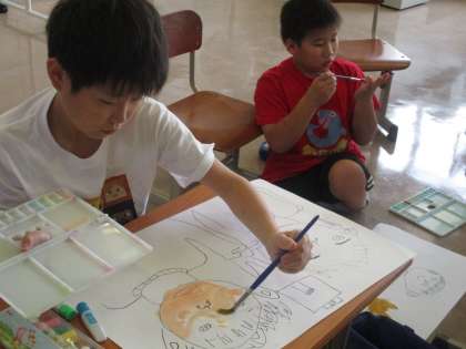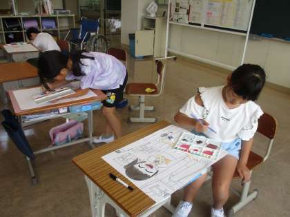 「あの日あの時の気もち」というテーマで学習しています。心に残っていることを思い出し、その時はどんな気持ちだったかを絵に表現しています。