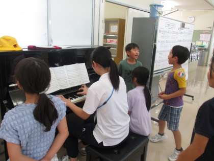 先生のピアノに合わせて、連合音楽会で歌う歌を練習する姿が見られました。