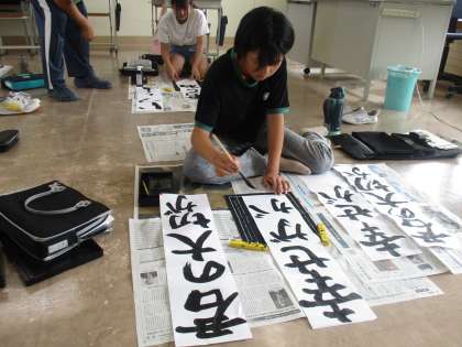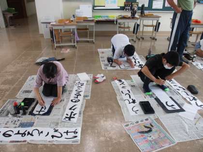 学習発表会で書道のパフォーマンスをしたいと考えた子供たち。