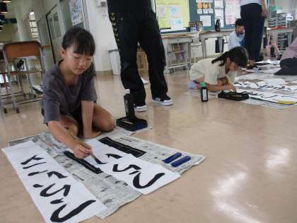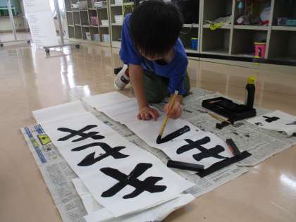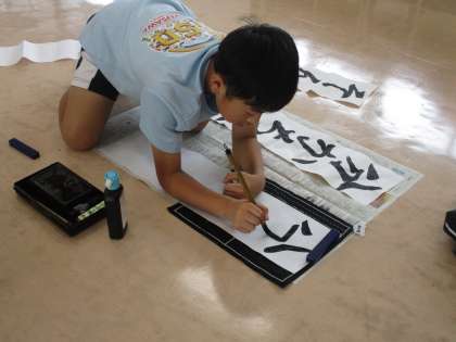4年生は5・6年生を見習って、文字のバランスを確認して、1文字1文字丁寧に集中して書きました。