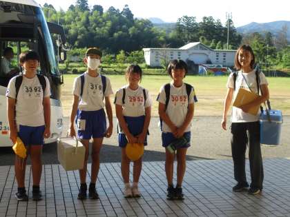 今日は、チャレンジ陸上記録会です。6年生は、「いってきます」と元気に出発しました。