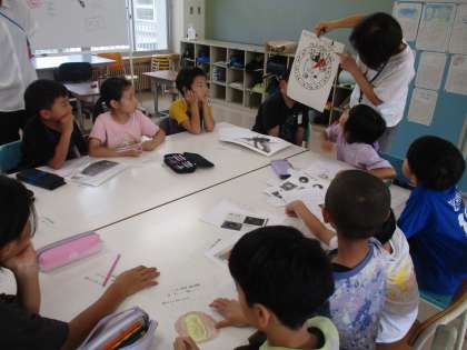 今日の福の時間では、1・2年生が生活科の時間に調べた「カブトムシの一生」についてを3年生に発表しました。