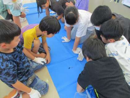 3・4年生の生き物大好き会社が、昼休みに「生き物ふれあい体験」を企画しました。