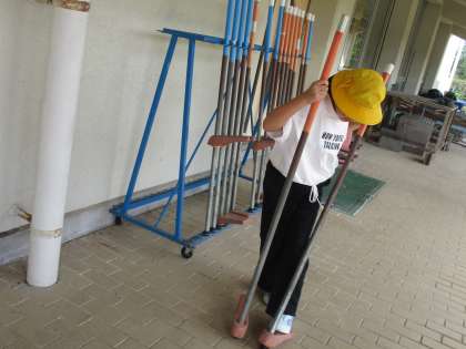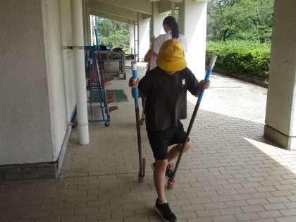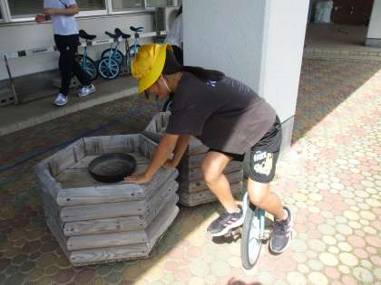 外にある一輪車と竹馬で遊んでいました。どちらもバランス力が必要な遊びで、乗るのは難しそうですが、一生懸命チャレンジしていました。