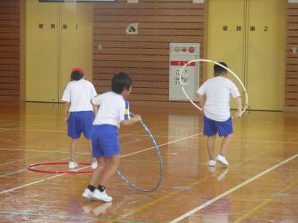 学習発表会で披露するマット運動やフラフープの技を練習しました。