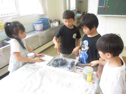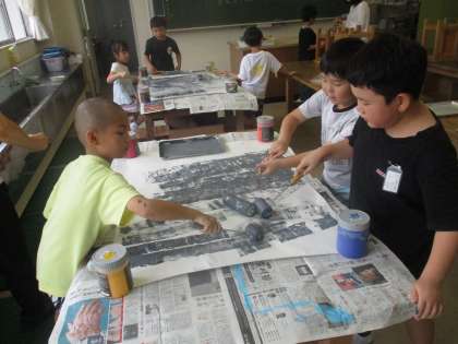 岩に見えるように色の調整をしたり、塗る方向を考えたりするなど、工夫しました。