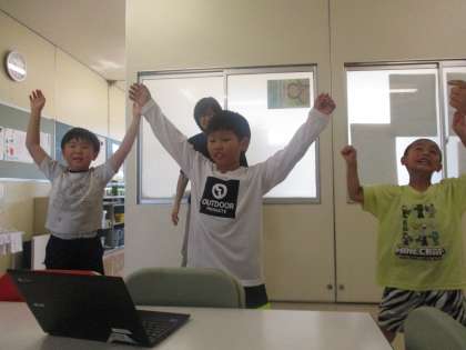1・2年生は、休み時間にクロームブックの動画を見ながら、学習発表会のダンスの練習をしていました。